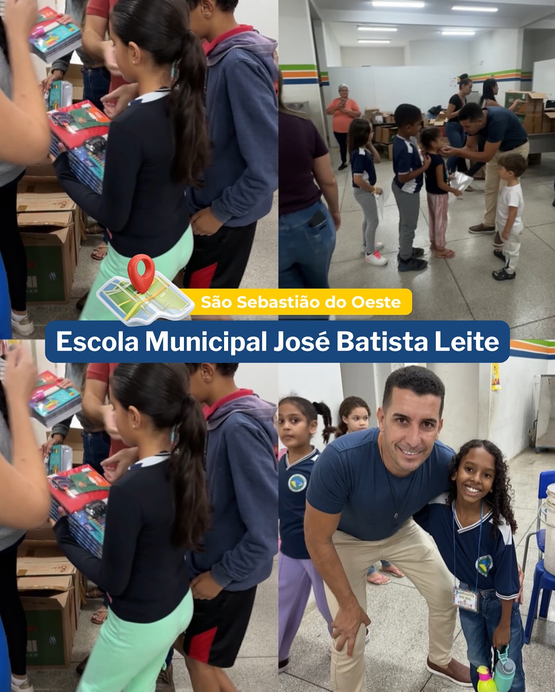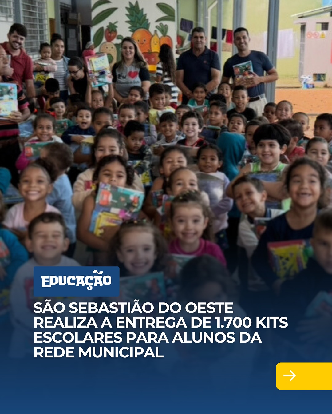 A Prefeitura de São Sebastião do Oeste realizou ontem uma grande ação de valorização da educação: a entrega de 1.700 kits escolares para todos os alunos da rede municipal, desde a educação infantil até o nono ano do Ensino Fundamental.