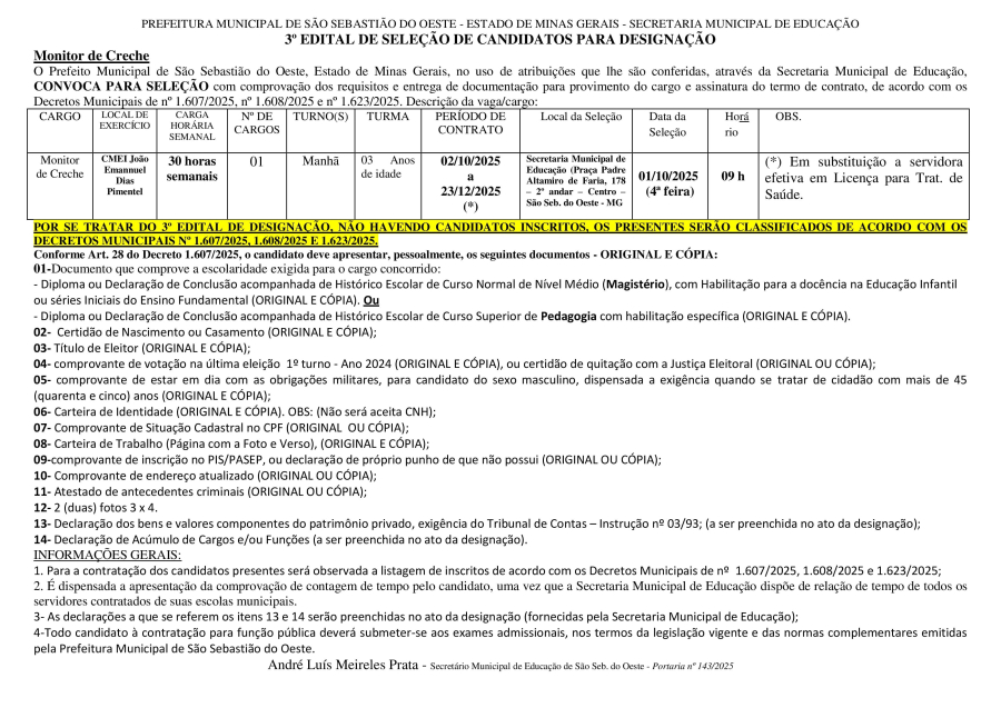 © 2025 Prefeitura Municipal de São Sebastião do Oeste. Todos os direitos reservados.