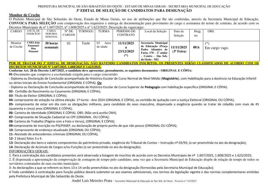 © 2025 Prefeitura Municipal de São Sebastião do Oeste. Todos os direitos reservados.